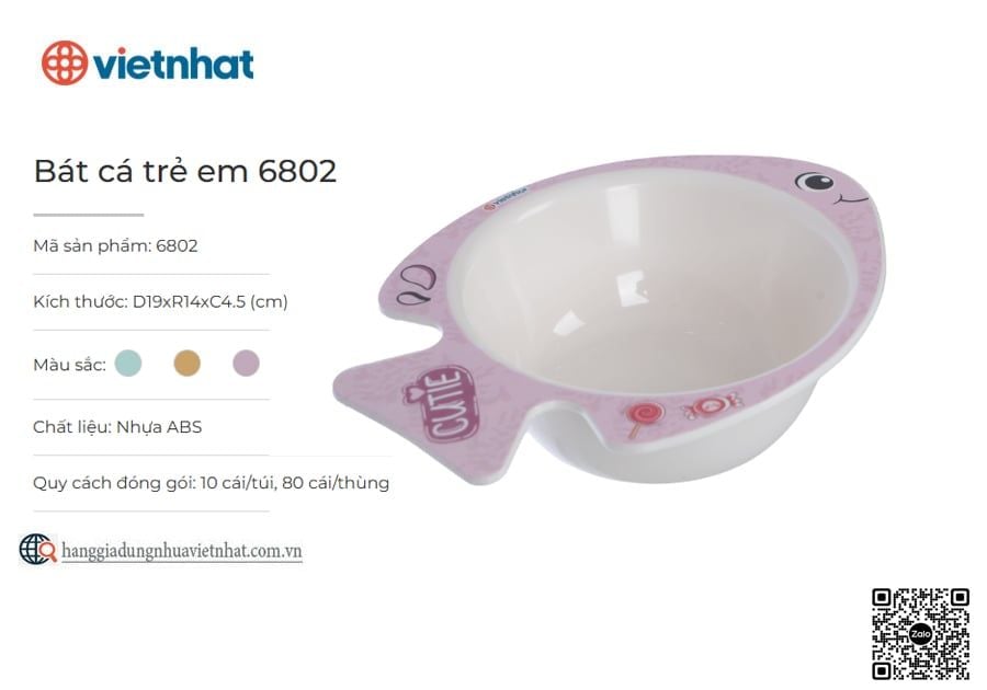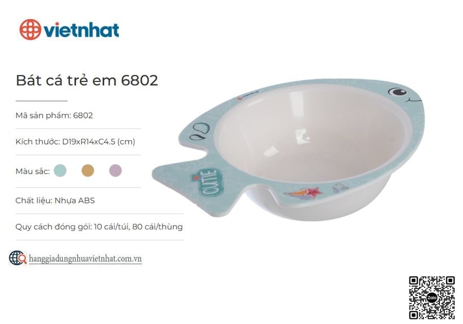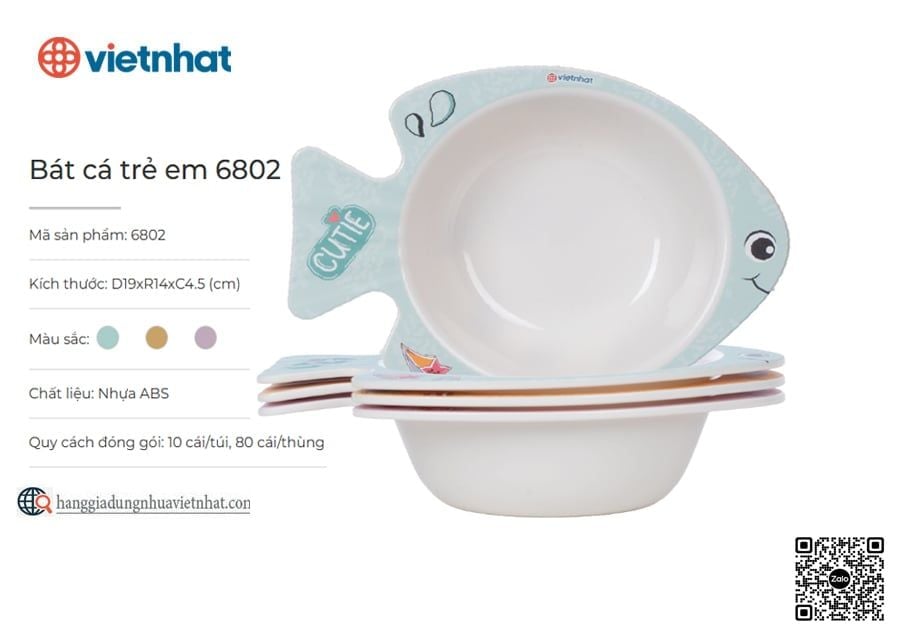 Bát cá trẻ em 6802 là sản phẩm bát đa năng dành cho trẻ nhỏ dùng để đựng cơm, canh, cháo, đồ ăn dặm,.... Bát cá được làm bằng chất liệu nhựa ABS an toàn, có độ bền cao, hạn chế trầy xước, nứt vỡ mang đến sự tiện lợi khi sử dụng hàng ngày. Đặc biệt, sản phẩm có thiết kế hình con cá độc đáo với nhiều hình in cực bắt mắt hứa hẹn sẽ tạo thêm hứng thú cho bé trong mỗi bữa ăn.