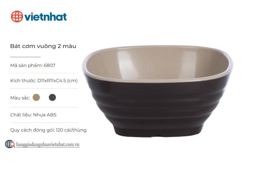 Bát cơm vuông 2 màu 6807 là dòng bát phíp cao cấp có thiết kế 2 màu độc đáo cùng những đường gân nổi bật bao quanh thân bát, tạo điểm nhấn thẩm mỹ cho không gian bàn ăn của mọi gia đình, hàng quán. Được làm từ nhựa ABS dày dặn, sản phẩm không chỉ an toàn cho sức khỏe mà còn có độ bền cao, chịu nhiệt tốt, khả năng chống trầy xước mang lại sự tiện lợi và vẻ đẹp lâu dài trong quá trình sử dụng.