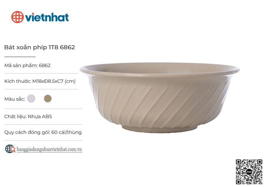 Bát xoắn phíp 1T8-6862 là sản phẩm bát phíp đa năng và tiện ích trong việc phục vụ các món ăn tại gia đình, hàng quán. Bên ngoài sản phẩm có những vân xoắn nổi khối, phần miệng được làm loe rộng tạo điểm nhấn còn trong lòng được làm trơn nhẵn, dễ dàng vệ sinh. Bát xoắn phíp được làm bằng chất liệu nhựa nguyên sinh an toàn, bền bỉ, có khả năng chịu nhiệt tốt, thích hợp để đựng mì, canh, salad, hoặc các món trộn,...