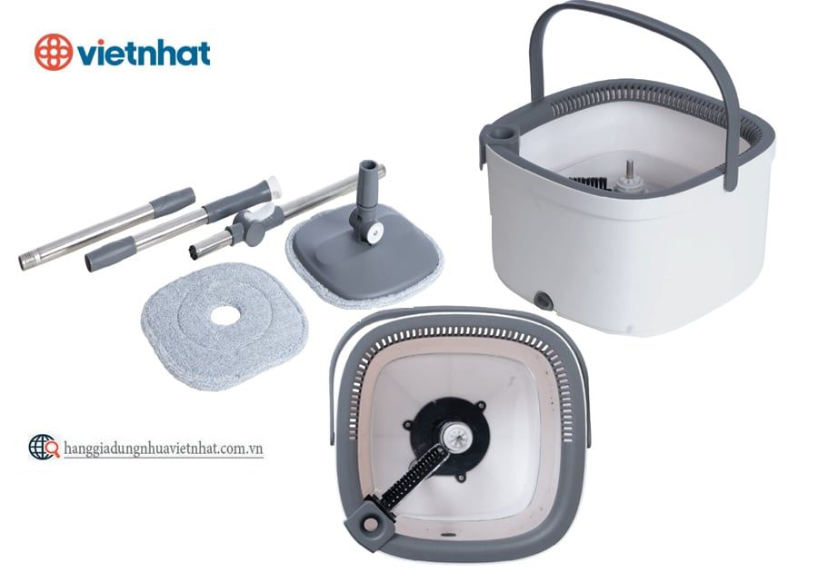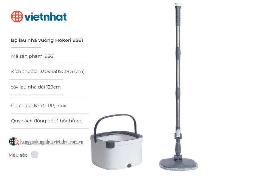 Bộ lau nhà vuông Hokori 9561 là bộ sản phẩm vệ sinh sàn nhà tiện ích bao gồm 1 cây lau nhà và 1 thùng giặt có cơ chế vắt ly tâm giúp làm sạch và vắt khô bông lau tự động, nhanh chóng. Cây lau nhà sở hữu thiết kế đầu xoay 360 độ linh hoạt, kết hợp sợi bông siêu nhỏ có khả năng thấm hút tốt dễ dàng làm sạch mọi ngóc ngách và vết bẩn, giúp bạn tiết kiệm thời gian dọn dẹp nhà cửa mỗi ngày.