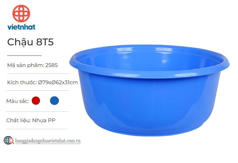 Chậu nhựa Việt Nhật là sản phẩm gia dụng tiện ích không thể thiếu trong mỗi gia đình dùng để tắm gội, giặt đồ, rửa thực phẩm,… Sản phẩm nổi bật với thiết kế trơn nhẵn, dễ dàng vệ sinh, hạn chế bám bẩn cùng lòng sâu tăng khả năng chứa nước. Sản phẩm được làm bằng chất liệu nhựa PP nguyên sinh có độ bền cao, kết cấu chắc chắn, dày dặn, các đường viền đều được xử lí kĩ càng, an toàn cho người sử dụng.