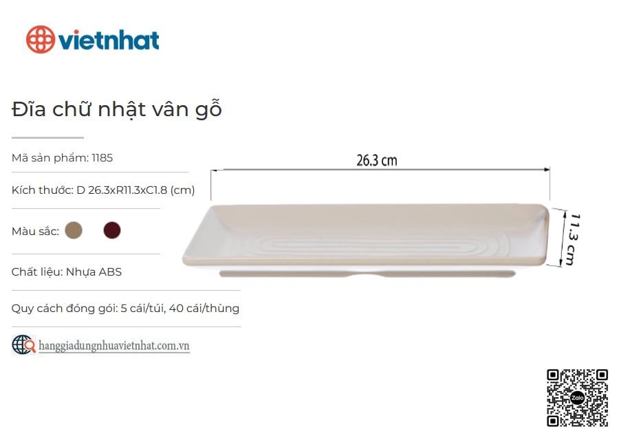 Đĩa chữ nhật vân gỗ 1185 là sản phẩm đĩa phíp có hoạ tiết vân gỗ sang trọng giúp bày biện và trang trí món ăn bắt mắt hơn khi phục vụ tại gia đình, hàng quán. Được làm từ nhựa ABS nguyên sinh, sản phẩm không chỉ an toàn cho sức khỏe mà còn có độ bền cao, chịu nhiệt tốt, hạn chế rơi vỡ, mang lại sự tiện lợi và vẻ đẹp lâu dài trong quá trình sử dụng.