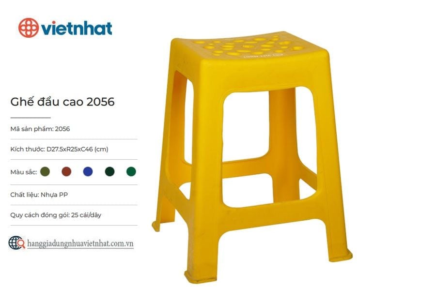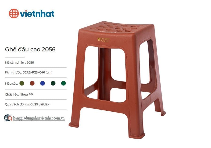 Ghế đẩu cao 2056 của Việt Nhật là lựa chọn yêu thích của nhiều gia đình, hàng quán bởi thiết kế trẻ trung, hiện đại với từng đường nét được hoàn thiện tỉ mỉ phù hợp với mọi không gian. Sản phẩm được thiết kế với khuôn ghế lớn, mặt ghế có độ võng gồm nhiều lỗ thoáng khí phía trên tạo cảm giác thoải mái khi ngồi lâu. Ghế được làm bằng chất liệu nhựa PP 100% đảm bảo an toàn, chịu được mưa nắng, hạn chế bạc màu và cực kỳ dày dặn, chắc chắn.
