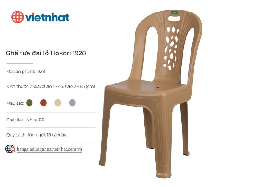Ghế tựa đại lỗ Hokori 1928 là mẫu ghế ngồi cao cấp thích hợp sử dụng tại nhiều không gian gia đình, hàng quán. Sản phẩm có thiết kế tựa lưng vững chãi với nhiều lỗ thoáng khí kết hợp mặt ghế có độ võng phù hợp giúp gia tăng sự thoải mái khi ngồi. Đặc biệt, ghế tựa đại lỗ Hokori được làm bằng chất liệu nhựa PP an toàn, chịu được mưa nắng, hạn chế bạc màu và cực kỳ chắc chắn.