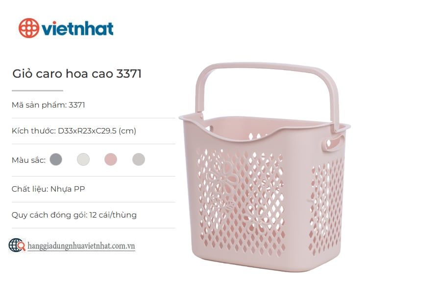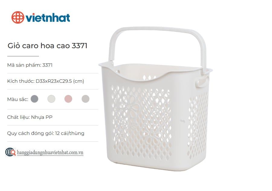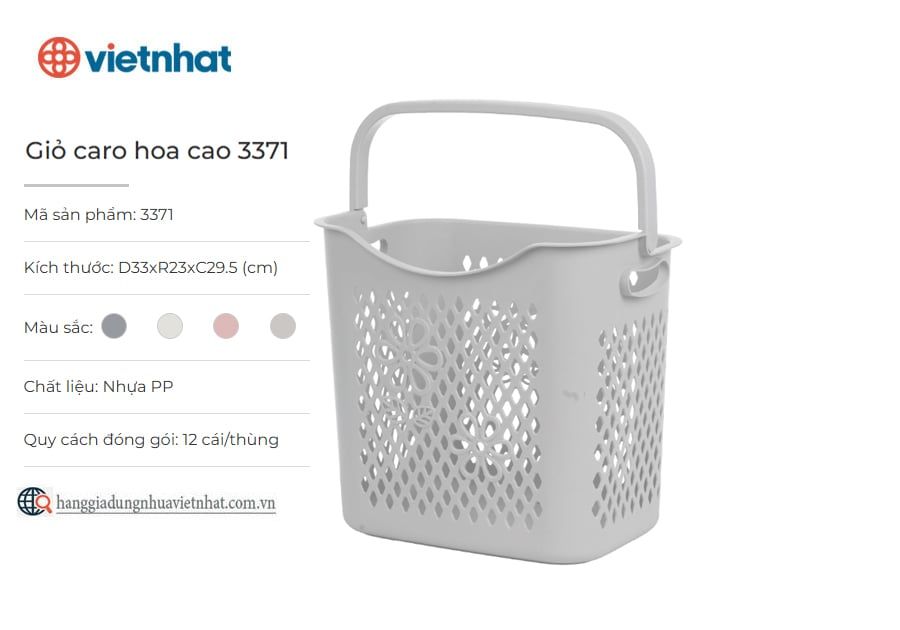 Giỏ caro hoa cao 3371 là giỏ đựng đồ đa năng có thiết kế các ô thoáng khí được cách điệu bằng họa tiết caro và bông hoa tạo điểm nhấn tinh tế, bắt mắt. Sản phẩm sử dụng chất liệu nhựa PP an toàn, có độ bền cao, đảm bảo dày dặn, từng đường nét trên thân giỏ được hoàn thiện tỉ mỉ, chỉn chu phù hợp để đựng quần áo, đồ dùng, đồ chơi cho bé,... cực kỳ gọn gàng và tiện lợi.