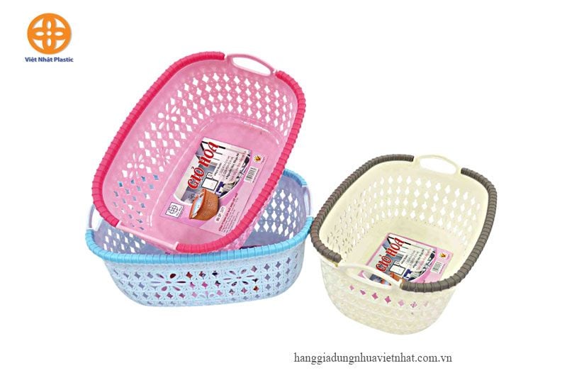 Rổ Nhựa Giả Đan Mây Có Quai Cầm có nhìu kích cỡ khác nhau.