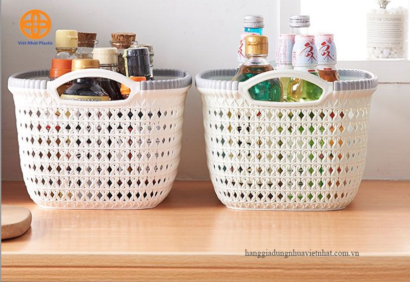 Rổ Nhựa Giả Đan Mây Có Quai Cầm có nhìu kích cỡ khác nhau.