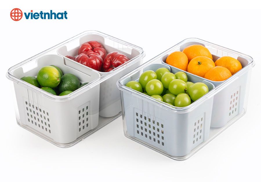 - Chất liệu nhựa nguyên sinh an toàn khi bảo quản thực phẩm. - Thiết kế hai lớp giúp bảo quản thực phẩm một cách tối ưu. - Lớp trong được chia làm 2 ngăn di động, thuận tiện cho việc phân loại thực phẩm. Đặc biệt, thiết kế lớp trong có nhiều lỗ nhỏ thoát nước giúp thực phẩm tươi lâu hơn. - Lớp hộp cứng bên ngoài dày dặn, trong suốt, dễ dàng quan sát thực phẩm bên trong. - Combo nắp đậy có khoá cài chắc chắn và gioăng cao su giúp giữ thực phẩm kín khí, không lẫn mùi. - Kiểu dáng hộp cứng sang trọng, xếp chồng tiện lợi trong tủ lạnh. - Bề mặt hộp thực phẩm nhẵn mịn, dễ dàng vệ sinh sau mỗi lần sử dụng.