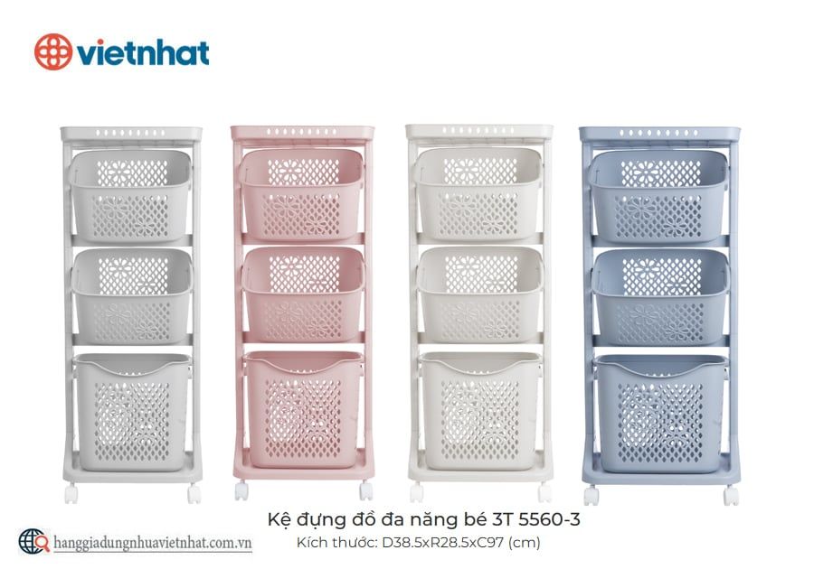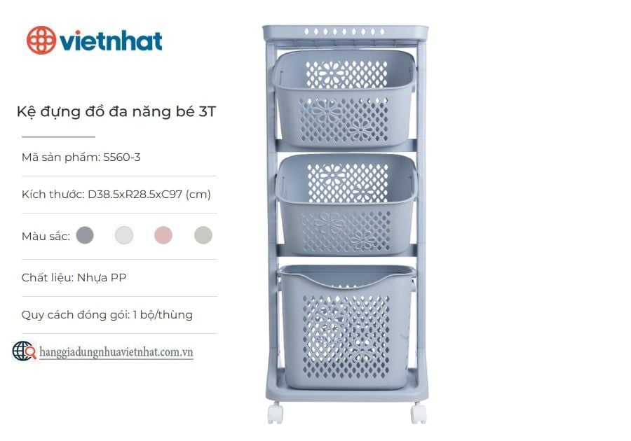 Kệ đựng đồ đa năng bé 2T 5560-2 là mẫu kệ nhựa tiện ích trong gia đình dùng để đựng quần áo, đồ dùng, bỉm sữa, phân loại đồ chơi của bé,... Sản phẩm được thiết kế thông minh với 4 bánh xe di chuyển thuận tiện, linh hoạt đến mọi ngóc ngách trong ngôi nhà. Bên cạnh đó, kệ còn có kết cấu chắc chắn, các giỏ đựng đồ có lòng rộng, sức chứa lớn có thể tháo lắp dễ dàng giúp bạn sáng tạo không gian sống phù hợp và tiện nghi hơn.