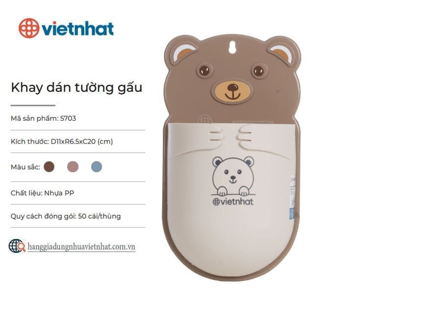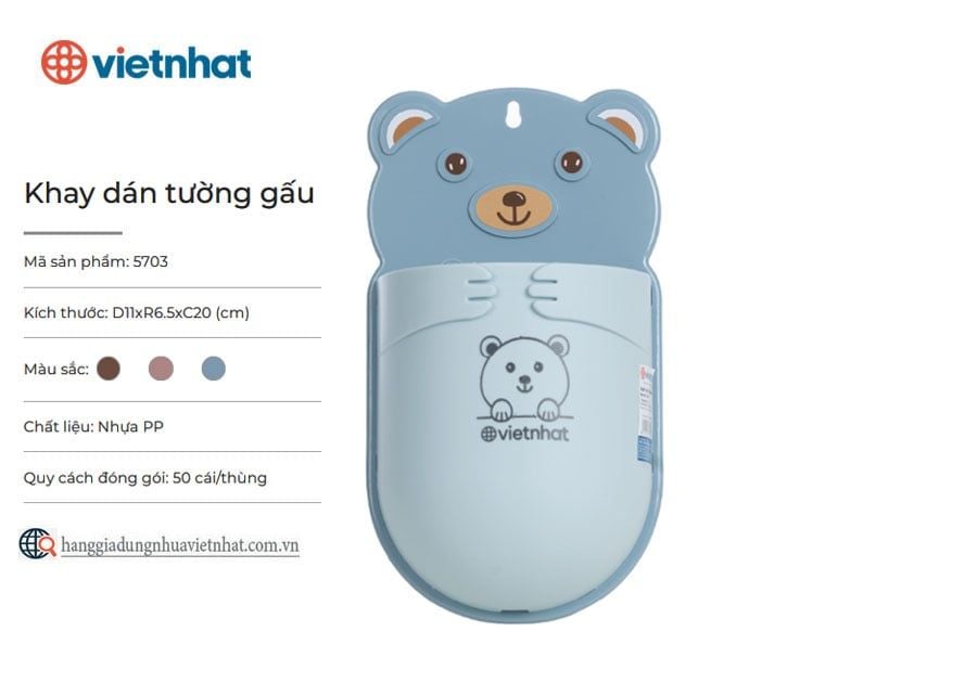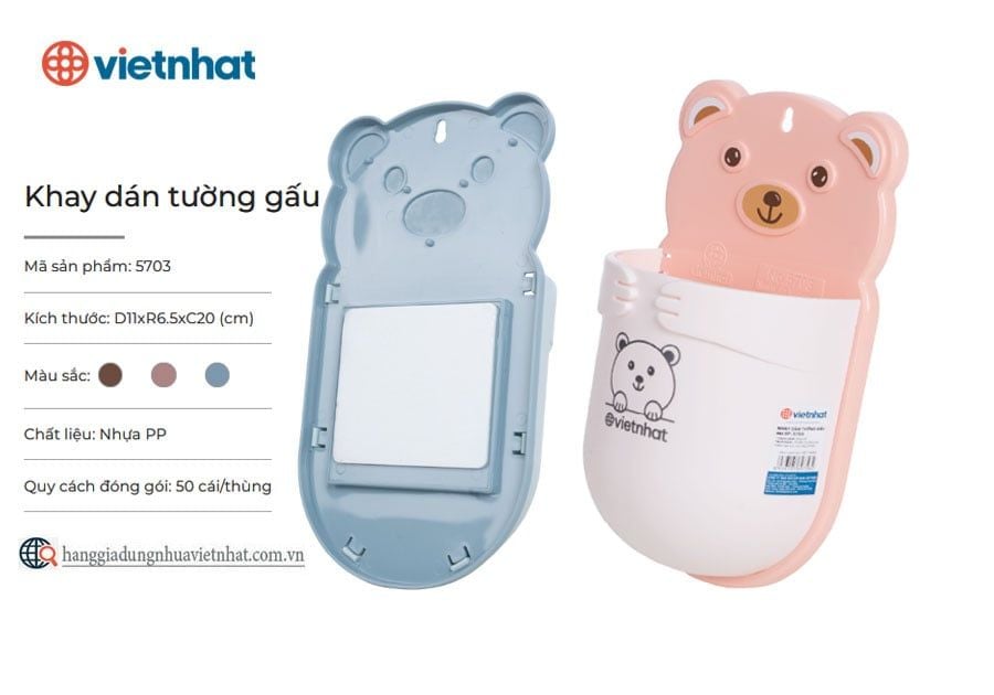 Khay dán tường gấu 5703 là khay nhựa đa năng dùng để lưu trữ nhiều vật dụng gia đình như đồ dùng nhà bếp, nhà tắm, văn phòng phẩm,... Khay sử dụng miếng dán siêu dính, đồng thời được trang bị thêm lỗ bắt vít giúp cố định chắc chắn ở nhiều vị trí tường. Đặc biệt, sản phẩm có thiết kế độc đáo với hình chú gấu đáng yêu cùng nhiều màu sắc bắt mắt hứa hẹn sẽ là điểm nhất nổi bật cho ngôi nhà của bạn.