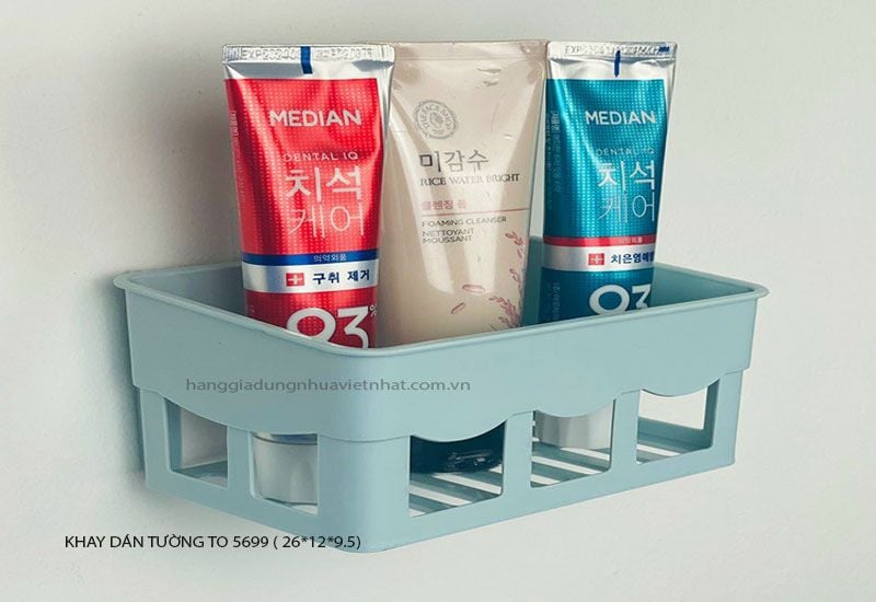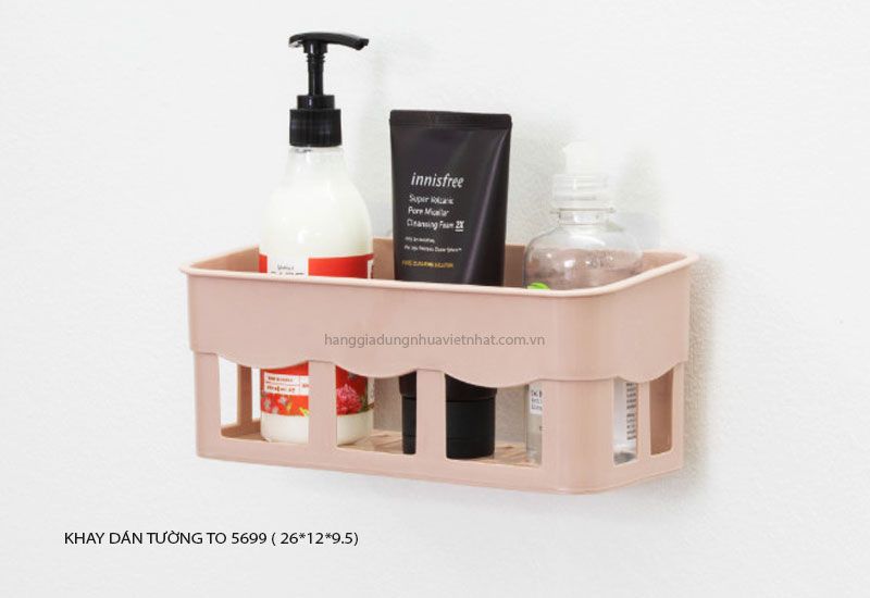 - Kích thước: ( dài x rộng x cao ) + Khay bé 5698: 17.5×12×8 + Khay to 5699: 26×12×9.5 - Màu sắc: trắng, xanh, hồng pastel -------------------------------- HƯỚNG DẪN LẮP ĐẶT: - Miếng dán chỉ dính chặt trên bề mặt láng phẳng: gạch men, kính, bề mặt tủ lạ (Không lắp miếng dính qua đường khe hở giữa 2 viên gạch ốp) - Lau tường nơi dán thật sạch, khô. - Đo vị trí và đánh dấu vị trí dán. Dán miếng dán giữ kệ, ép chặt để miếng dán chặt vào tường, lắp giá lên. - Để 10- 12 tiếng sau đó mới để đồ lên