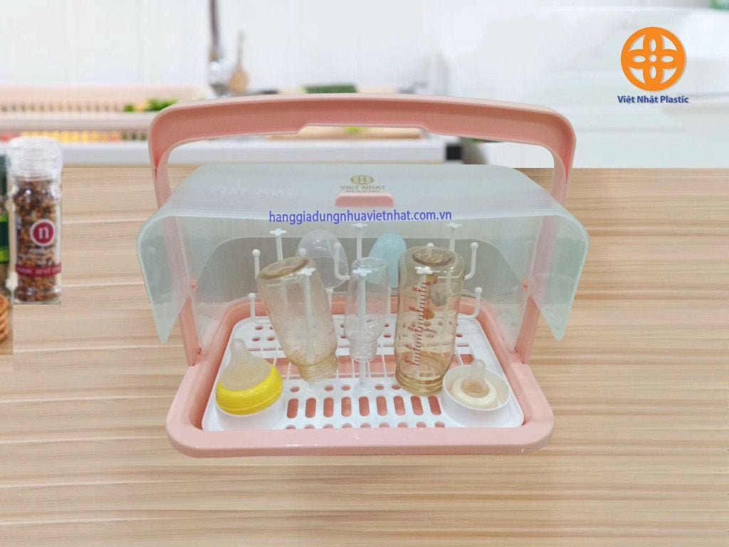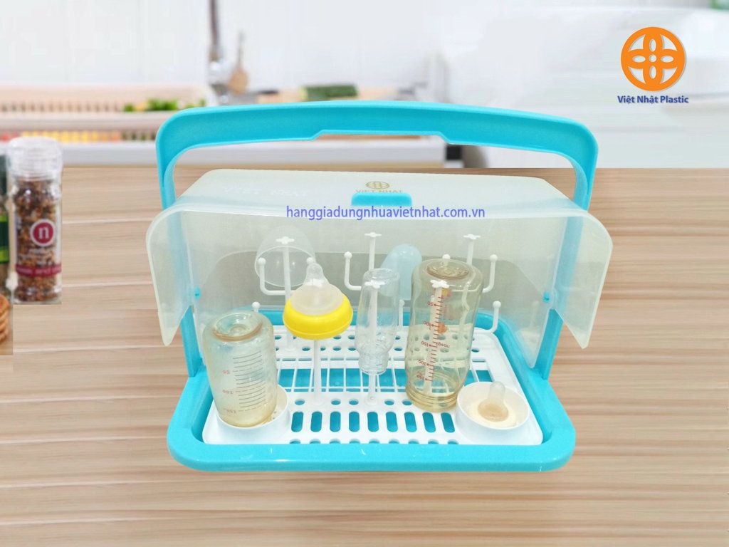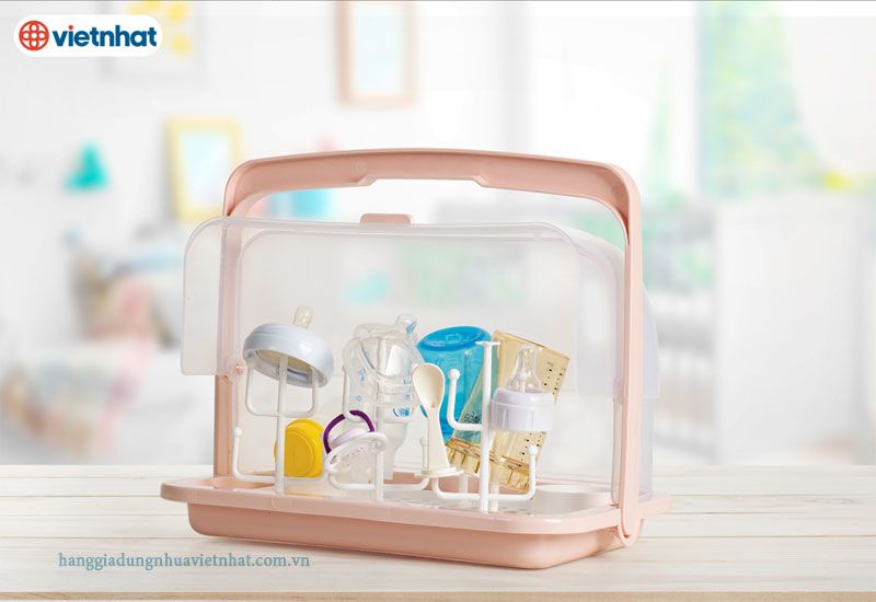 . Giá úp bình sữa được làm từ nhựa sạch PP cao cấp không chất độc hại, tuyệt đối an toàn cho sức khỏe của bé Thiết kế nhỏ gọn, tiện lợi giúp bảo quản bình sữa, ly cốc sạch sẽ, vệ sinh. Kệ có nhiều cộc để cắm bình sữa, ly cốc, giúp bình ly nhanh khô ráo Giá có khay lưới giúp nước chảy xuống đáy dễ dàng và ngăn vật dụng tiếp xúc trực tiếp với đáy, từ đó mà vật dụng luôn khô ráo, thoáng mát Nắp đậy kiểu lật giúp đóng mở nắp dễ dàng, bảo quản vật dụng vệ sinh, sạch sẽ, tránh ẩm mốc, côn trùng. Kệ có quai xách thuận tiện việc di chuyển, mang theo đi xa.