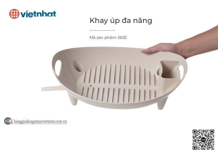 Khay úp đa năng 5632 là sản phẩm khay nhựa thông minh, sử dụng để úp bát đĩa, cốc chén và các dụng cụ nhà bếp khô ráo. Được làm từ nhựa nguyên sinh, an toàn với sức khoẻ. Không chỉ có ống dẫn nước bên dưới giúp tránh tích tụ nước thừa, đảm bảo vệ sinh, khay úp còn được tích hợp thêm một ống đựng tiện lợi bên cạnh để bảo quản đũa thìa, dao kéo,...
