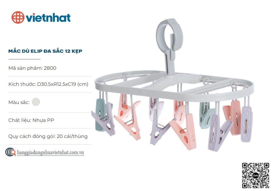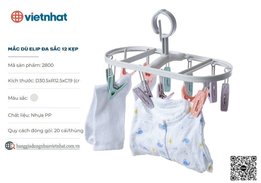 - Tích hợp 12 kẹp giúp phơi được nhiều đồ mà không chiếm nhiều diện tích