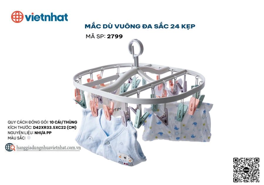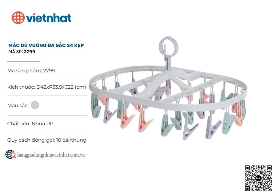 Mắc dù vuông đa sắc 24 kẹp 2799 là sản phẩm mắc dù có thiết kế tiện ích tích hợp 24 kẹp nhỏ chắc chắn trên cùng 1 mắc giúp bạn tiết kiệm thời gian và không gian phơi đồ mỗi ngày. Sản phẩm sử dụng chất liệu nhựa PP nguyên sinh bền bỉ, hạn chế bạc màu ngay cả khi phơi ngoài trời cùng nhiều màu sắc bắt mắt giúp tô điểm cho không gian sử dụng.