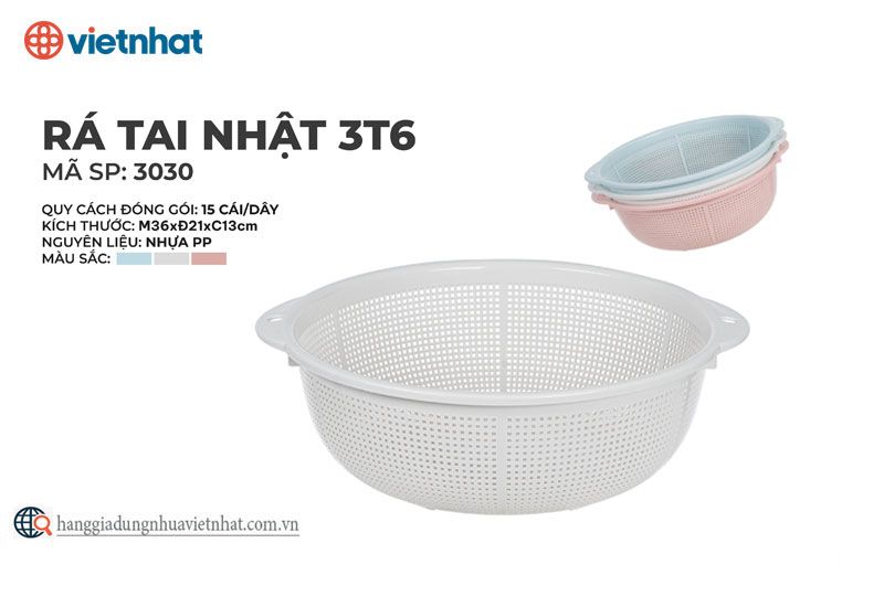 - Chất liệu nhựa PP nguyên sinh, có độ bền cao - Hai bên quai cầm được làm dày dặn, ở giữa có lỗ tròn thuận tiện treo lên khi không sử dụng - Thiết kế lòng sâu, mắt rá được phân bố đều, bề mặt được làm trơn nhẵn dễ dàng vệ sinh - Màu sắc nhã nhặn, đa dạng kích thước