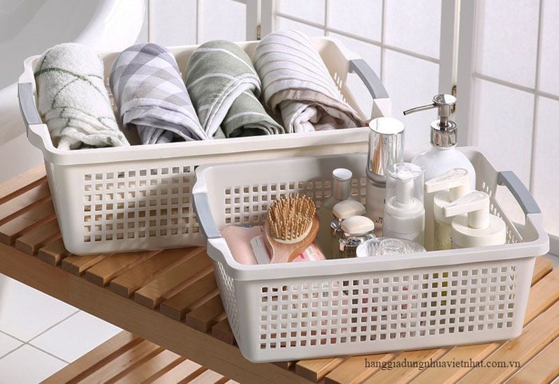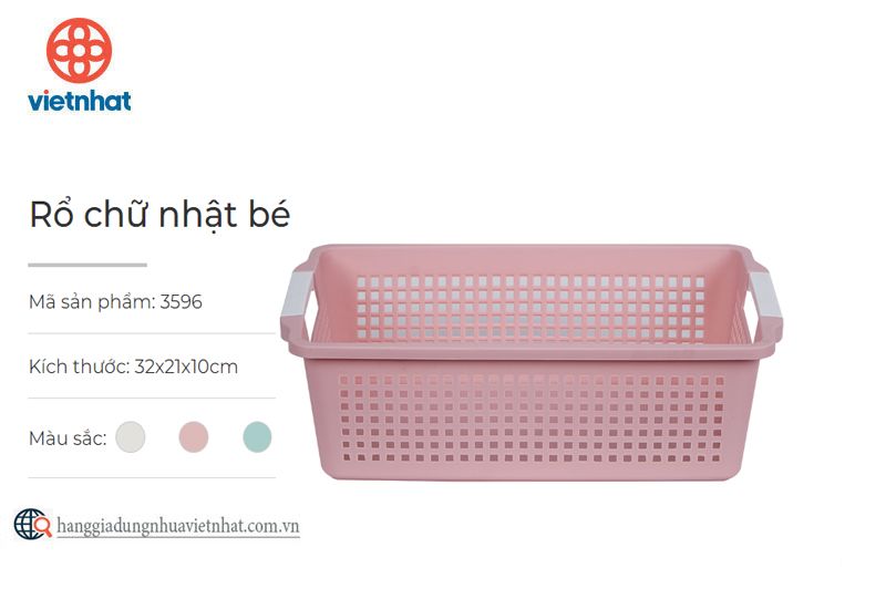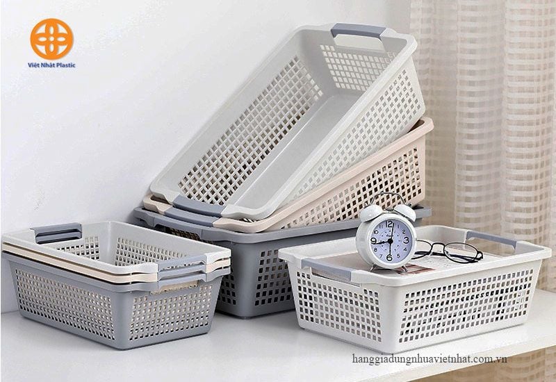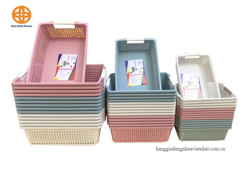 - Rổ chữ nhật được làm từ chất liệu nhựa PP nguyên sinh 100%, an toàn, độ bền cao, khả năng chống lão hóa tốt, độ bền màu lâu, thân thiện với môi trường. - Rổ chữ nhật thiết kế với kiểu dáng 3 size hình chữ nhật giúp bạn dễ dàng sắp xếp rổ trên kệ, ngay ngắn, gọn gàng, tiết kiệm diện tích. Màu sắc bắt mắt, đa dạng, phong phú, hài hòa với không gian nhà. - Rổ chữ nhật để đựng đồ chơi cho bé, đồ ăn vặt, đồ trang sức, đồ dùng văn phòng, đựng dụng cụ học tập,... Giúp căn nhà của bạn được gọn gàng ngăn nắp.