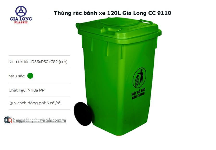 Thùng rác có bánh xe 120L Gia Long CC 9110