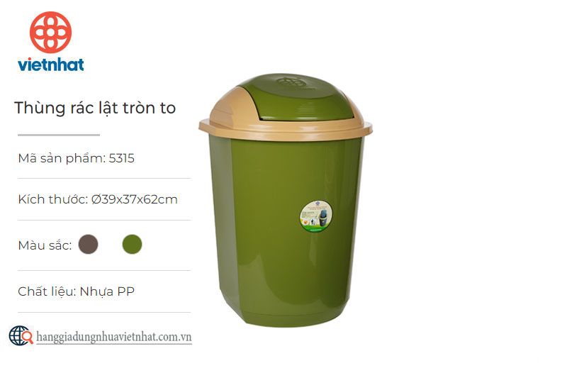 -Thùng rác nắp lật tròn bé in hoa Việt Nhật thiết kế với nắp đậy kín giúp ngăn mùi và chống côn trùng như ruồi, muỗi. - Cấu tạo chắc chắn, chống đâm thủng, hoàn toàn bằng nhựa, không hư hại, hạn chế các vết lõm.